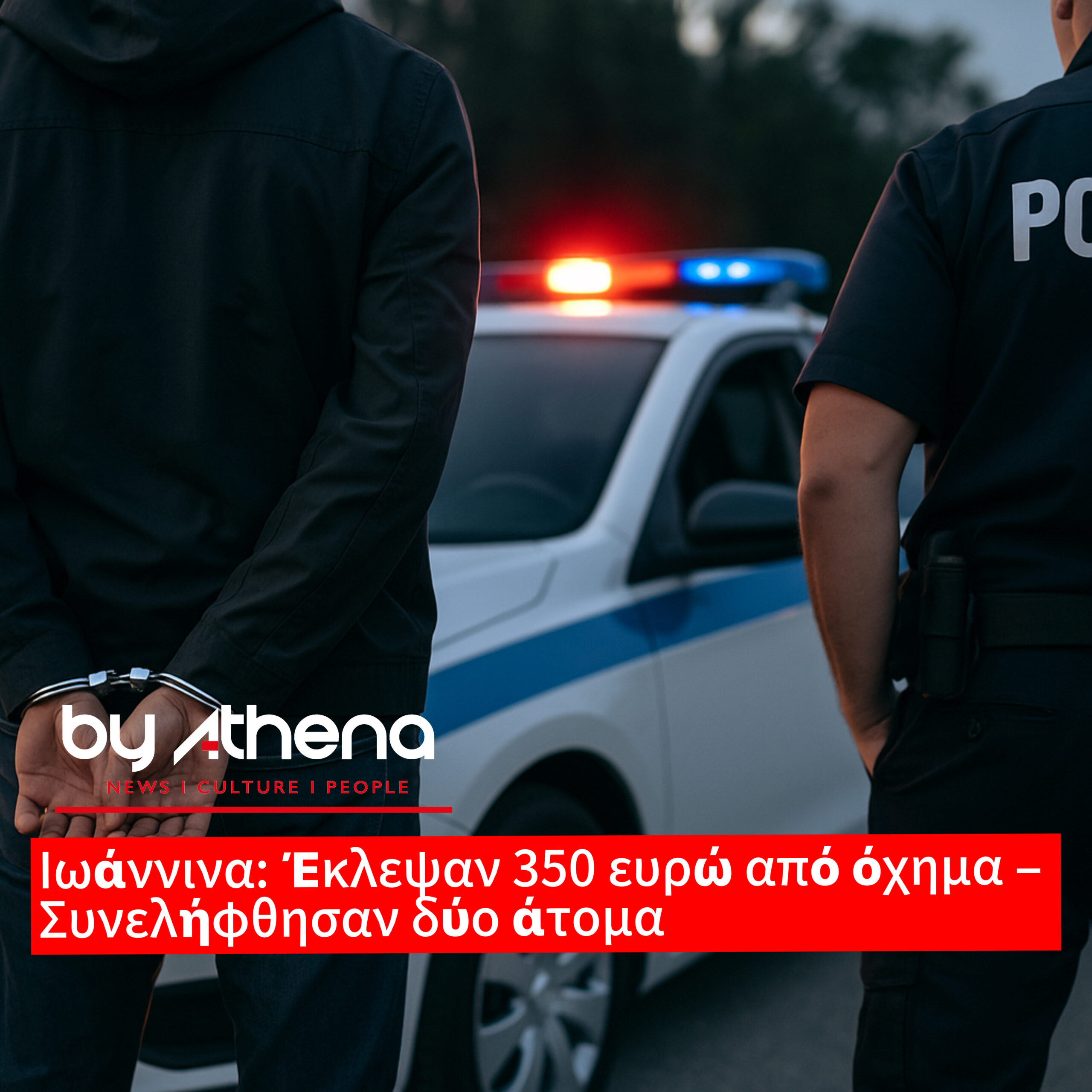 Στη σύλληψη δύο ατόμων προχώρησαν τα ξημερώματα της Δευτέρας οι αστυνομικές αρχές στα Ιωάννινα, οι οποίοι κατηγορούνται ότι αφαίρεσαν 350 ευρώ από ανασφάλιστο αυτοκίνητο. Σύμφωνα με την έρευνα της Υποδιεύθυνσης